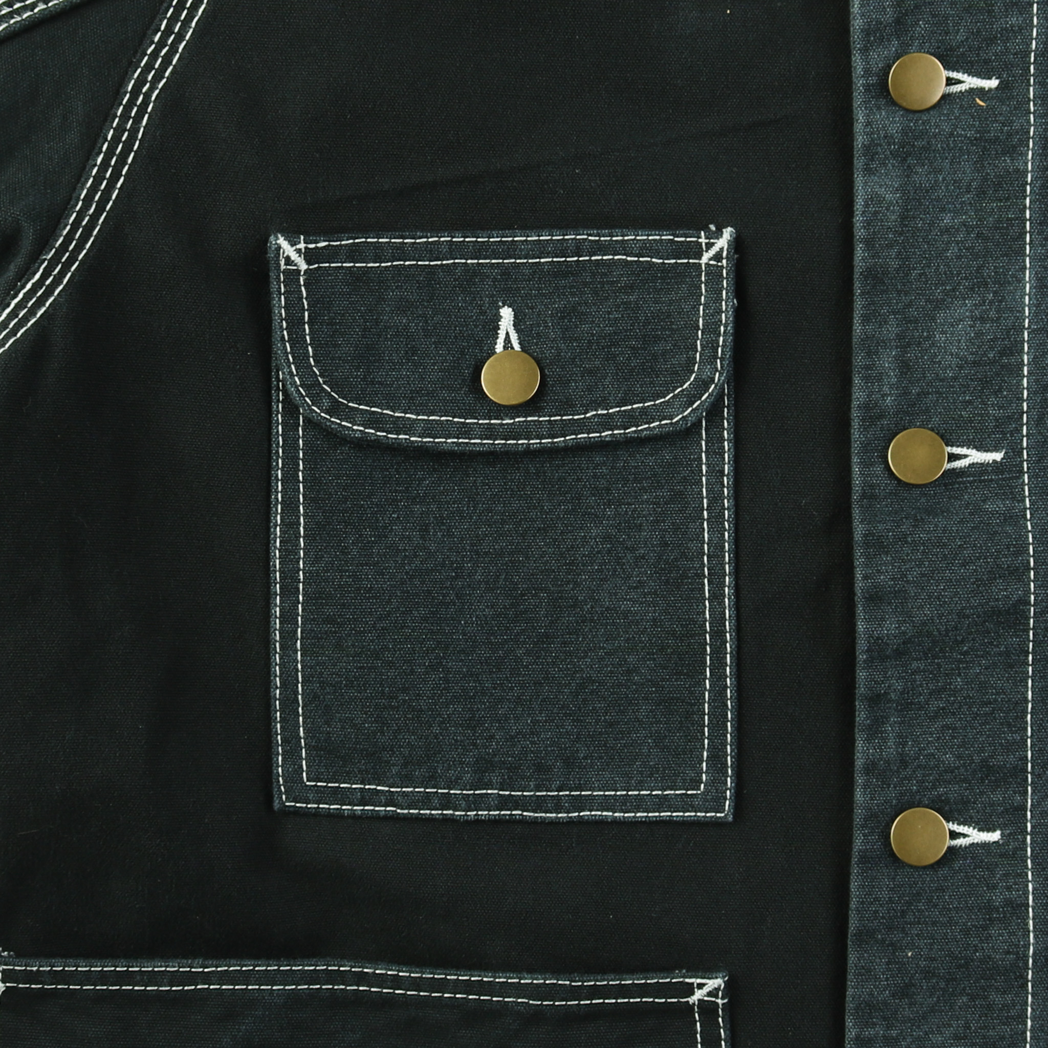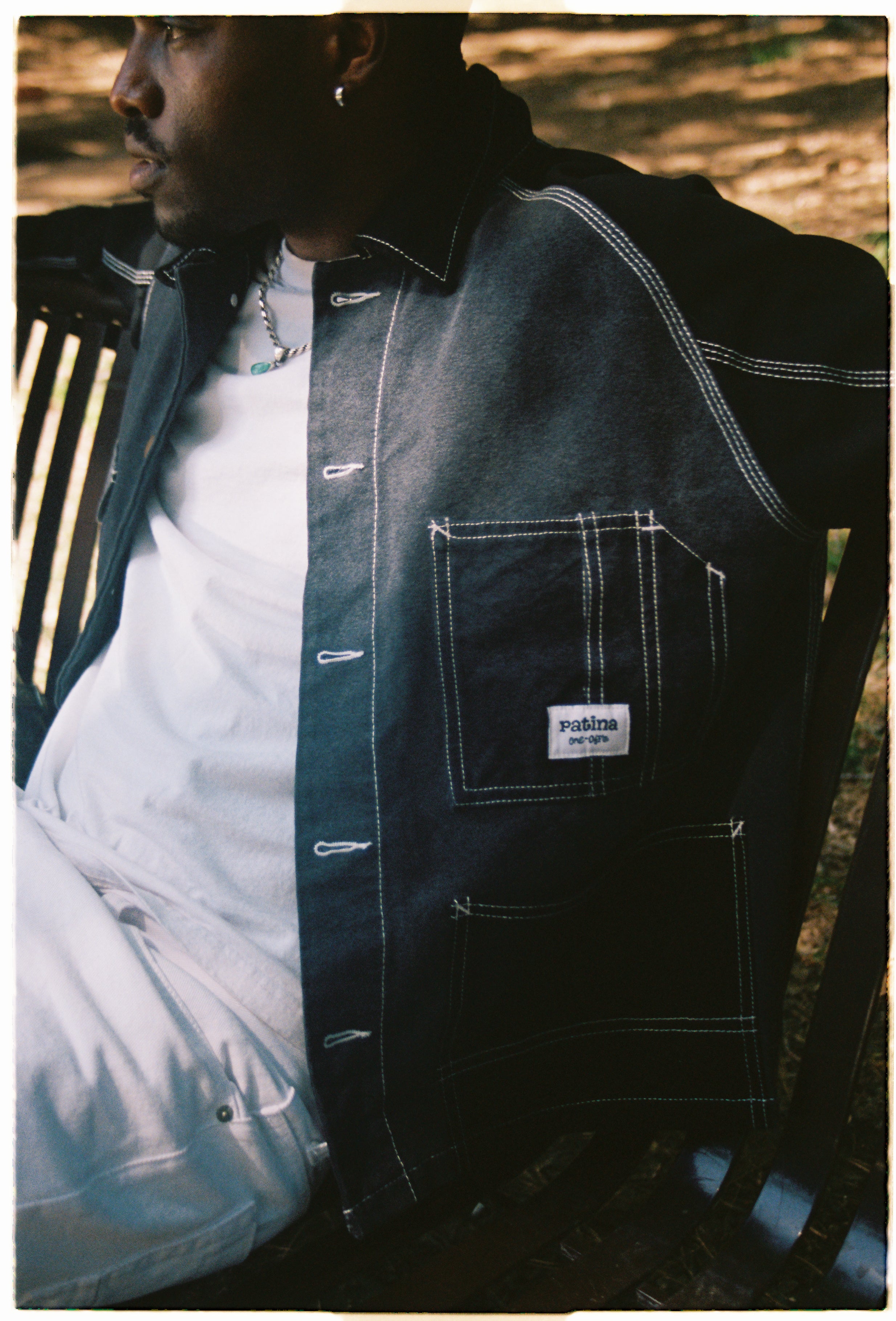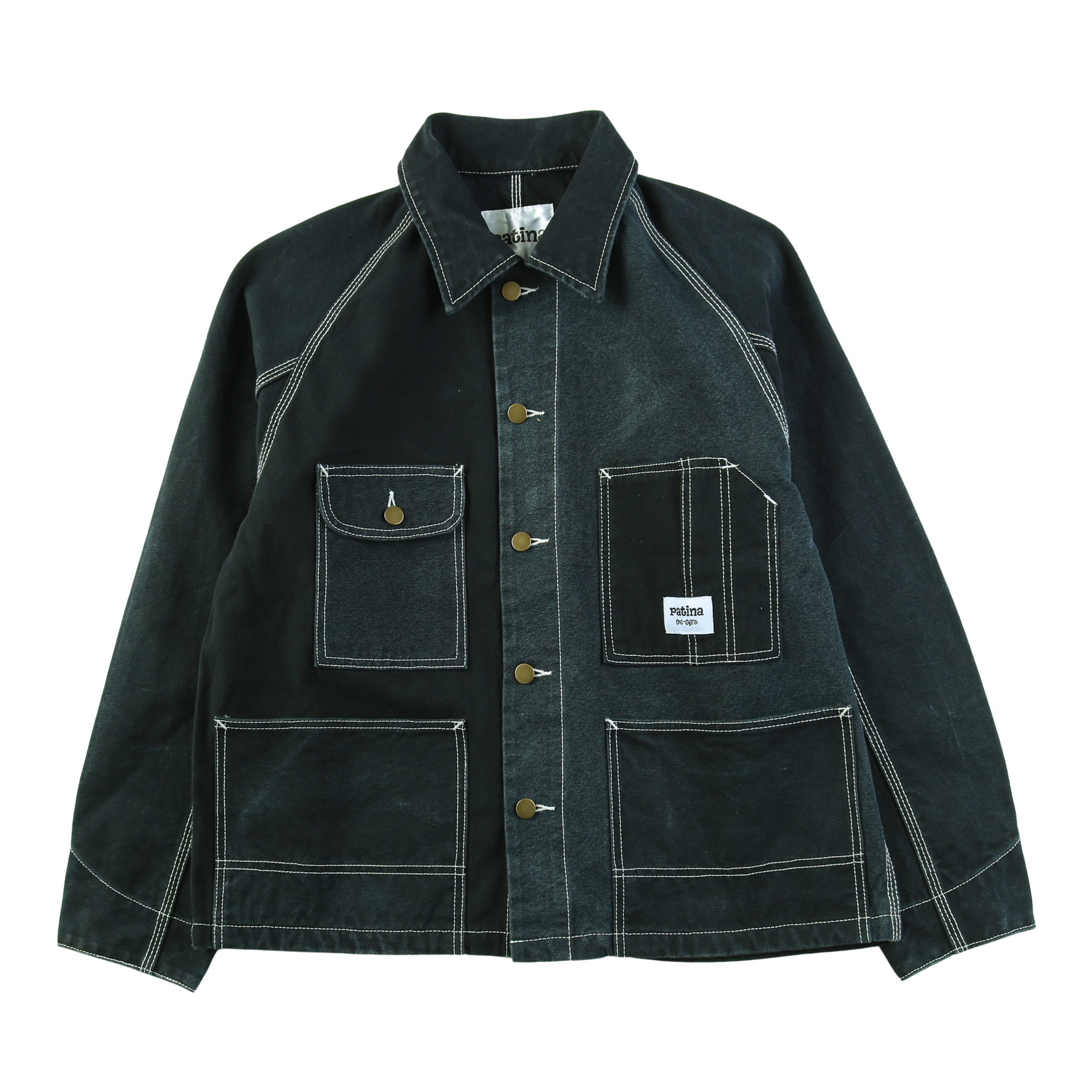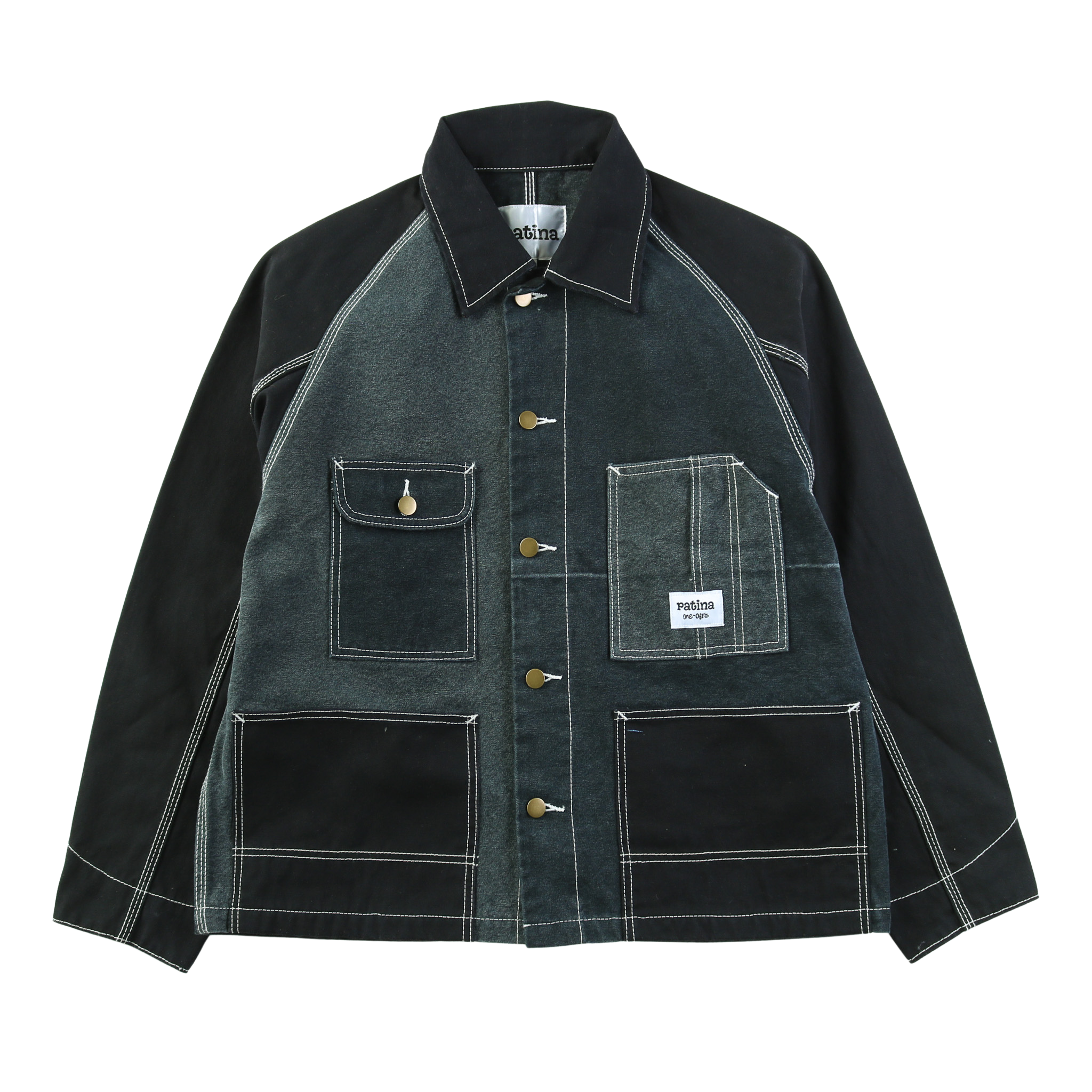 The main exterior & collar of the jacket is made from 100% repurposed and recycled used materials. The material is 12oz cotton, commonly referred to as cotton duck canvas and sourced by Patina from vintage workwear.