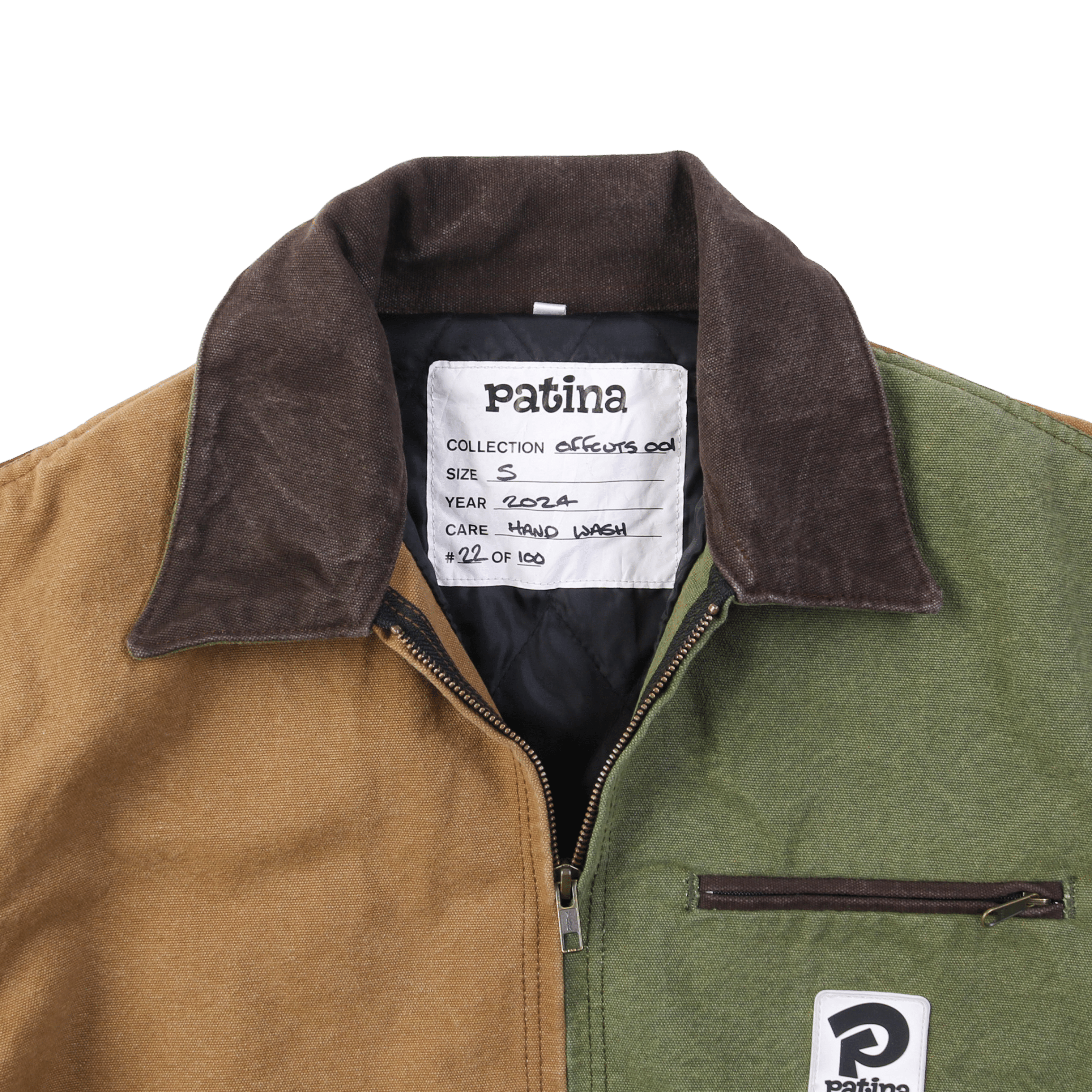 Elevate your wardrobe with a Patina Work Jacket, a fusion of classic workwear and environmentally conscious innovation. For Offcuts 001 we meticulously crafted recycled offcuts sourced from our very own production waste.