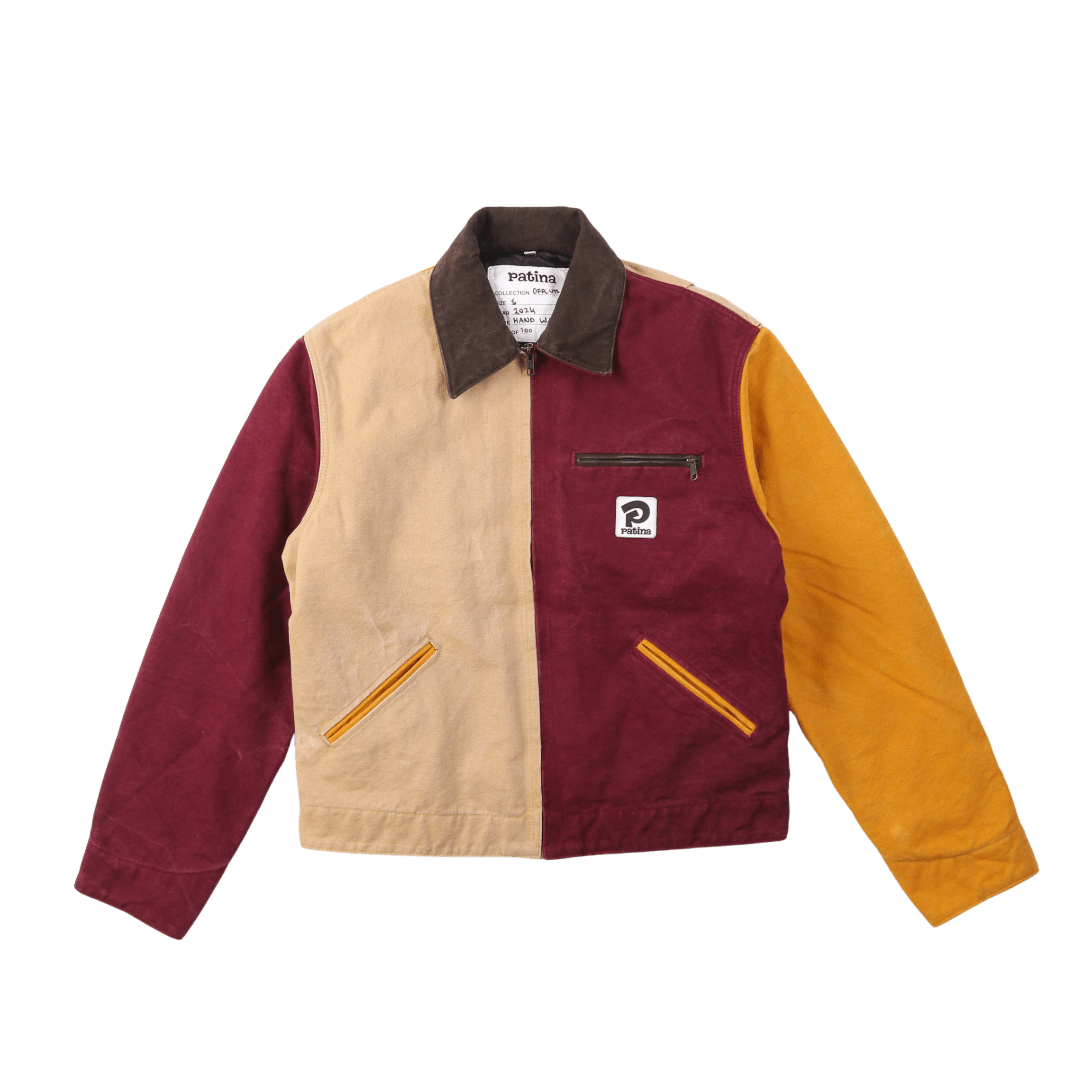 Elevate your wardrobe with a Patina Work Jacket, a fusion of classic workwear and environmentally conscious innovation. For Offcuts 001 we meticulously crafted recycled offcuts sourced from our very own production waste.